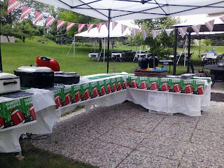 This was such a fun weekend! On Friday I went back to my parents house to help them with my little brother's graduation open house! Landon will be heading off to Ferris State University in August. He is going there on scholarship to play football! (That is the craziest sentence I have ever written! He can't be in college!!!!!!!) Since he is a football fanatic we did a Tailgate theme...Here are a ton of pictures of the decor! My mom is so good at party planning!